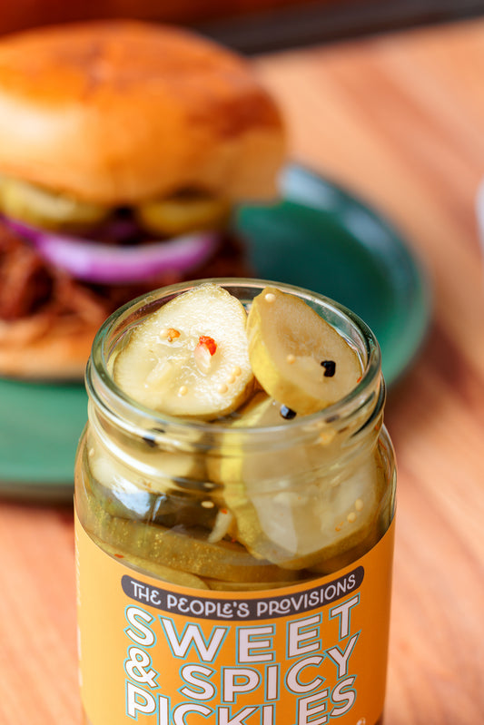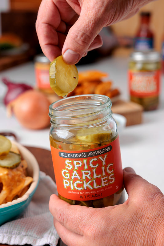 The People's Provisions was born out of a like-minded group of good food makers with over 20 years combined experience in the specialty food industry who felt need to make great tasting popular pantry items that are free of preservatives, made in the USA, not over-priced, and just simply taste great. We started with our favorite category, pickles, and will be expanding into the core pantry items for your sandwiches, burgers and hot dogs. Get ready for a taste revolution!